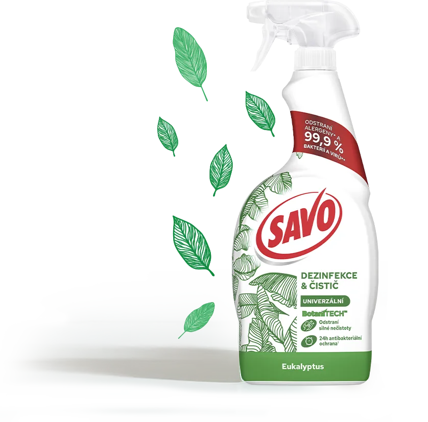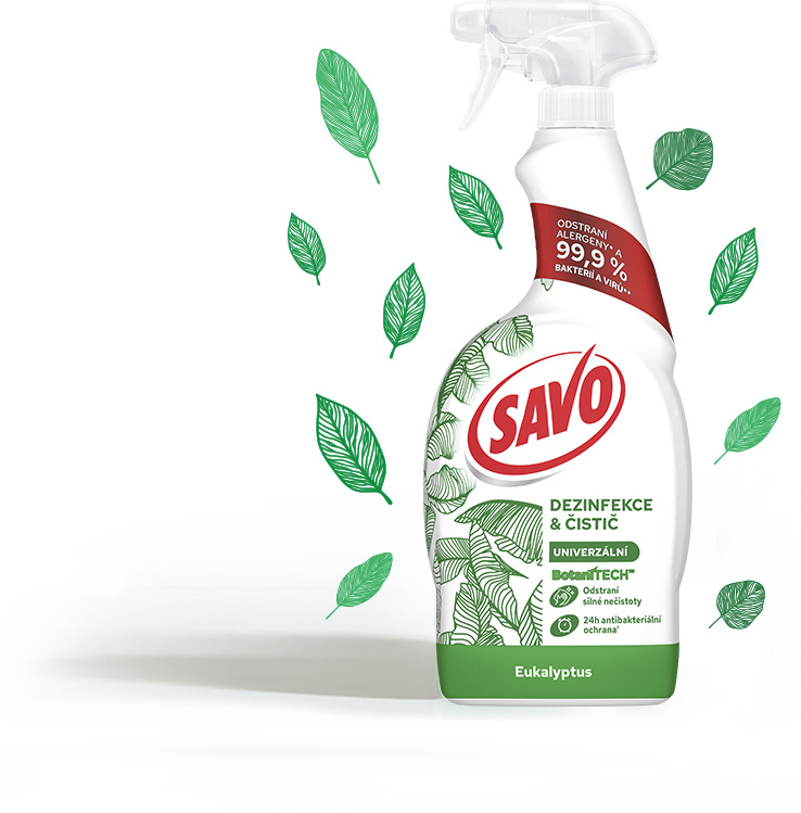Univerzální sprej Savo Eukalyptus je ideální na každodenní úklid domácnosti a čištění všech omyvatelných povrchů.